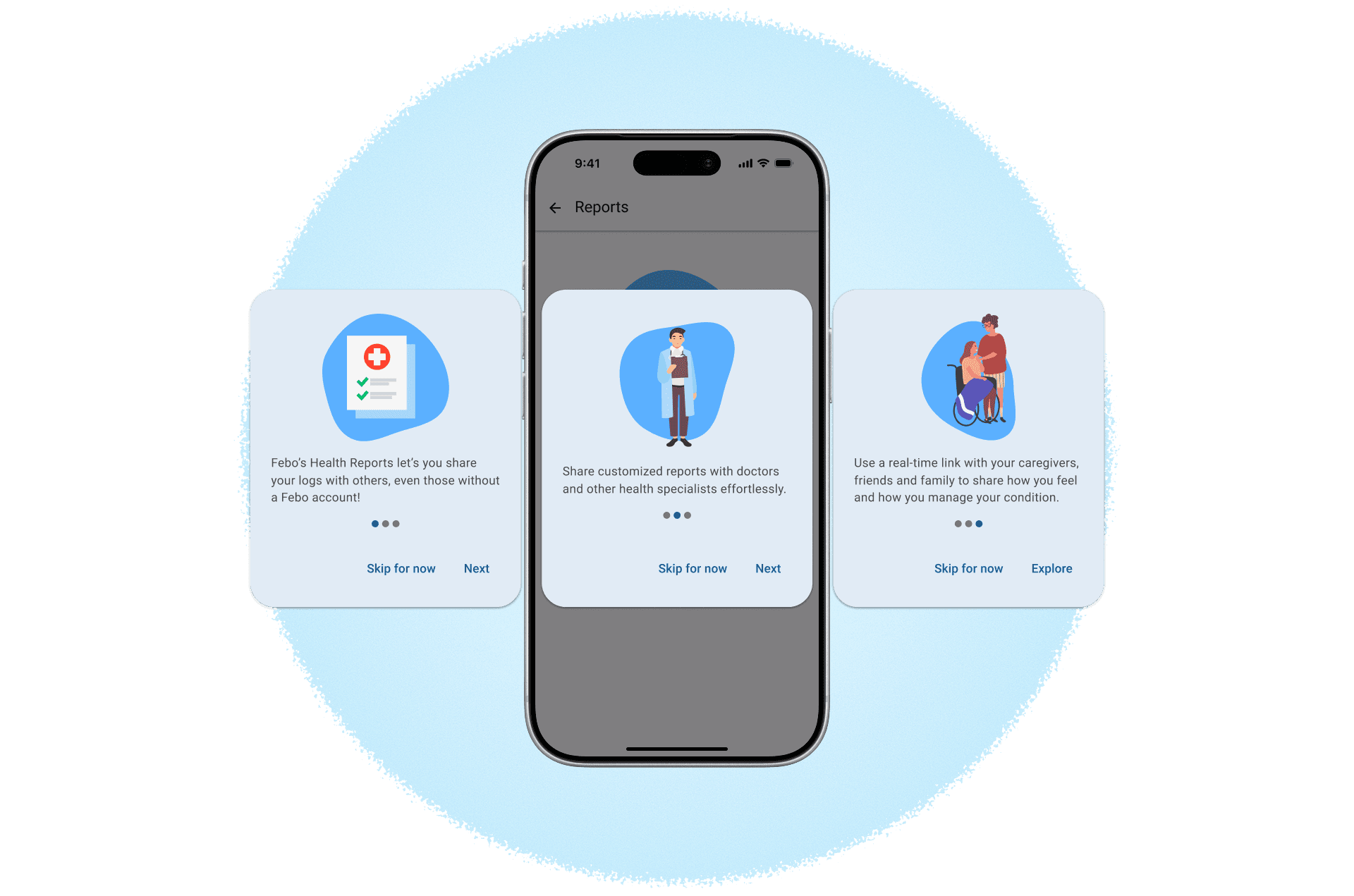 While working as a designer at Febo, I explored with the product manager opportunities to provide added value to both, patients and physicians. For this project, I designed the Health Reports on Febo Health. This feature allowed to share health insights with healthcare professionals, creating a bridge between patients and doctors.